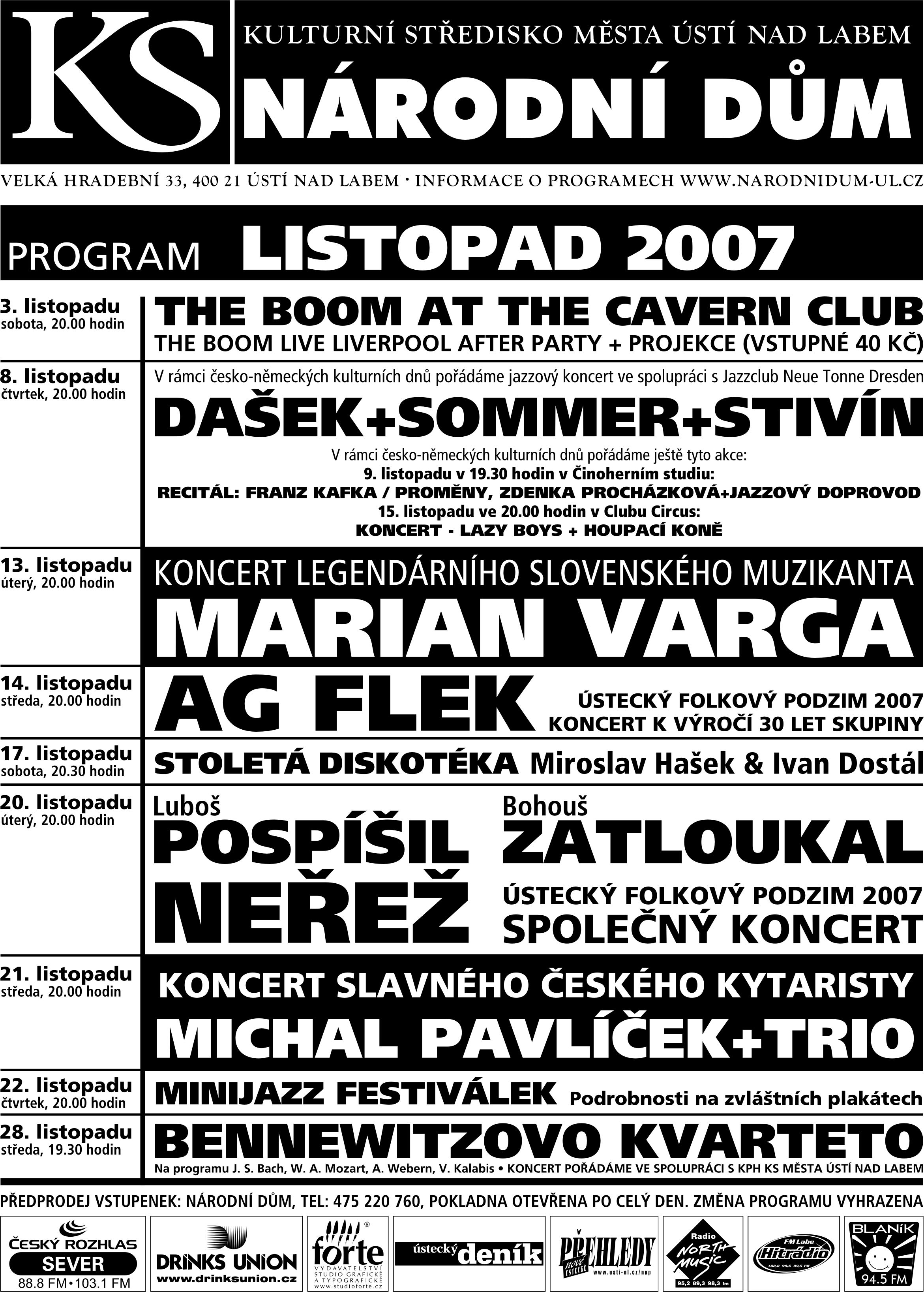 Zveme Vás na kulturní akce pořádané Kulturním střediskem města Ústí nad Labem v listopadu 2007.