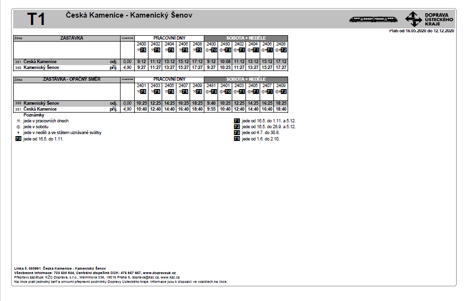 Aktualizovaný jízdní řád T1