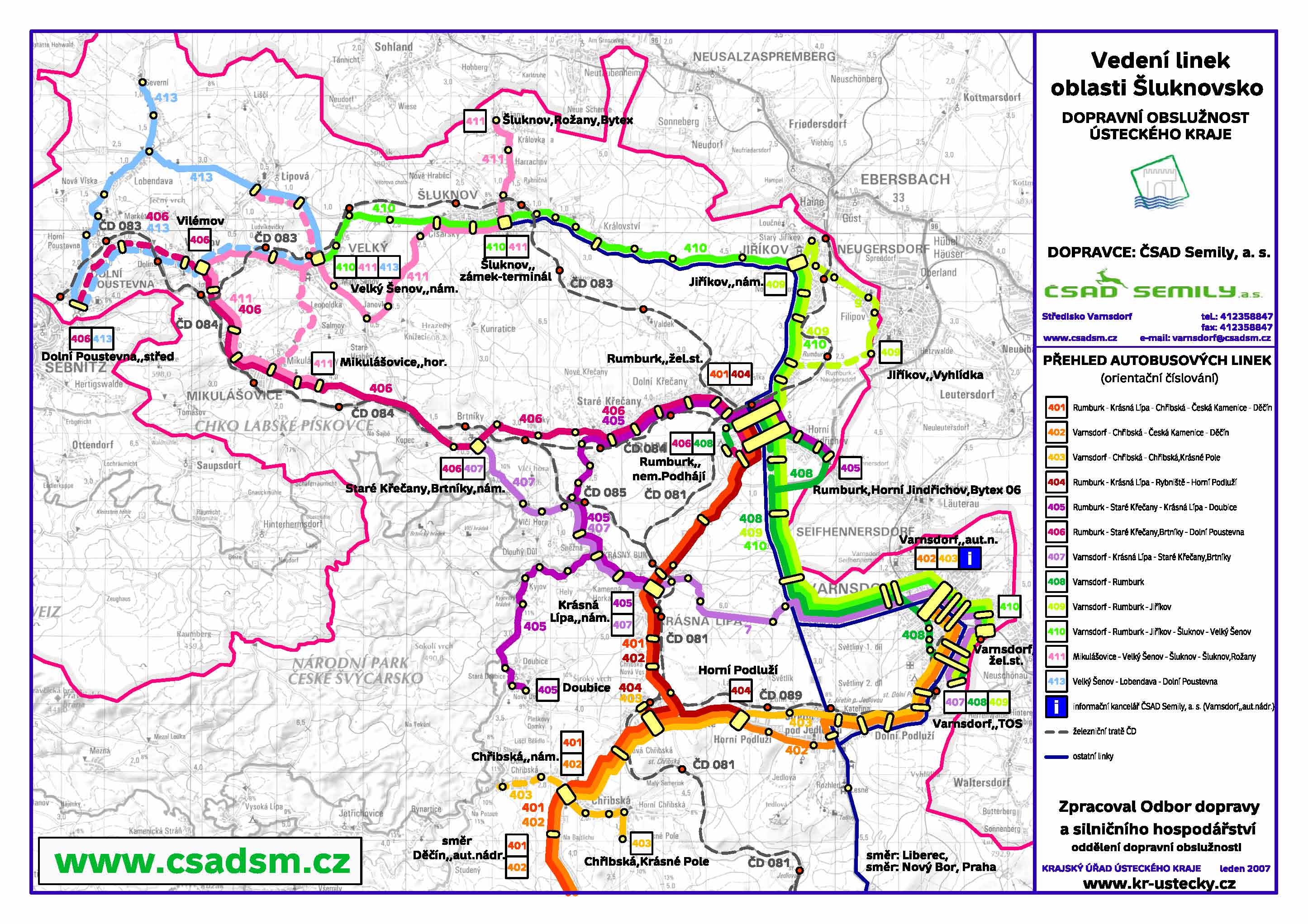 Rychle se cestující v nových linkách zorientuje v přiložené přehledné mapce. „Tu jsme vylepili ve všech autobusech a rovněž jsme ji otiskli v kapesních jízdních řádech, které pro cestující vydáváme“, řekl při projednávání příprav na změnu na krajském úřadu v Ústí nad Labem Tomáš Roubiček, generální ředitel ČSAD Semily. Doplnil, že při problémech se mohou cestující obracet na informační kancelář dopravce ve Varnsdorfu, i na internetových stránkách společnosti.