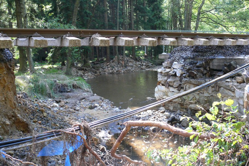 fotoreportáž z poničeného úseku trati mezi Jedlovou a Českou Kamenicí